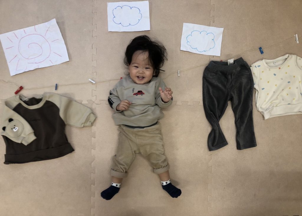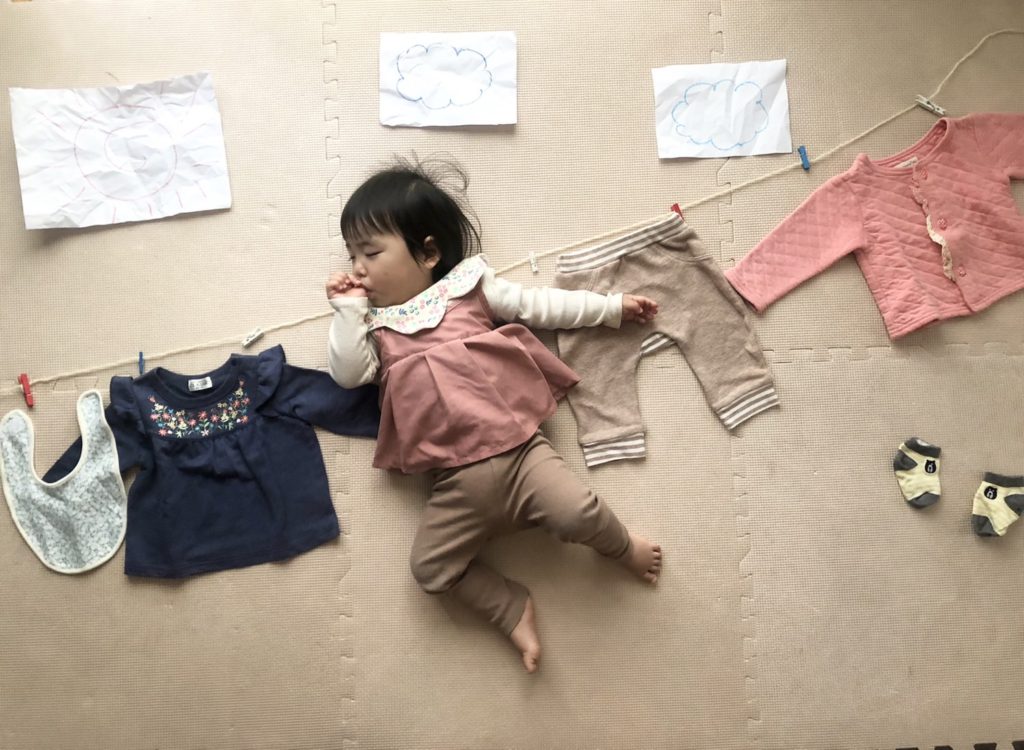 洗濯物に変身しました。お昼寝中に 洗濯がよく乾きました。😊