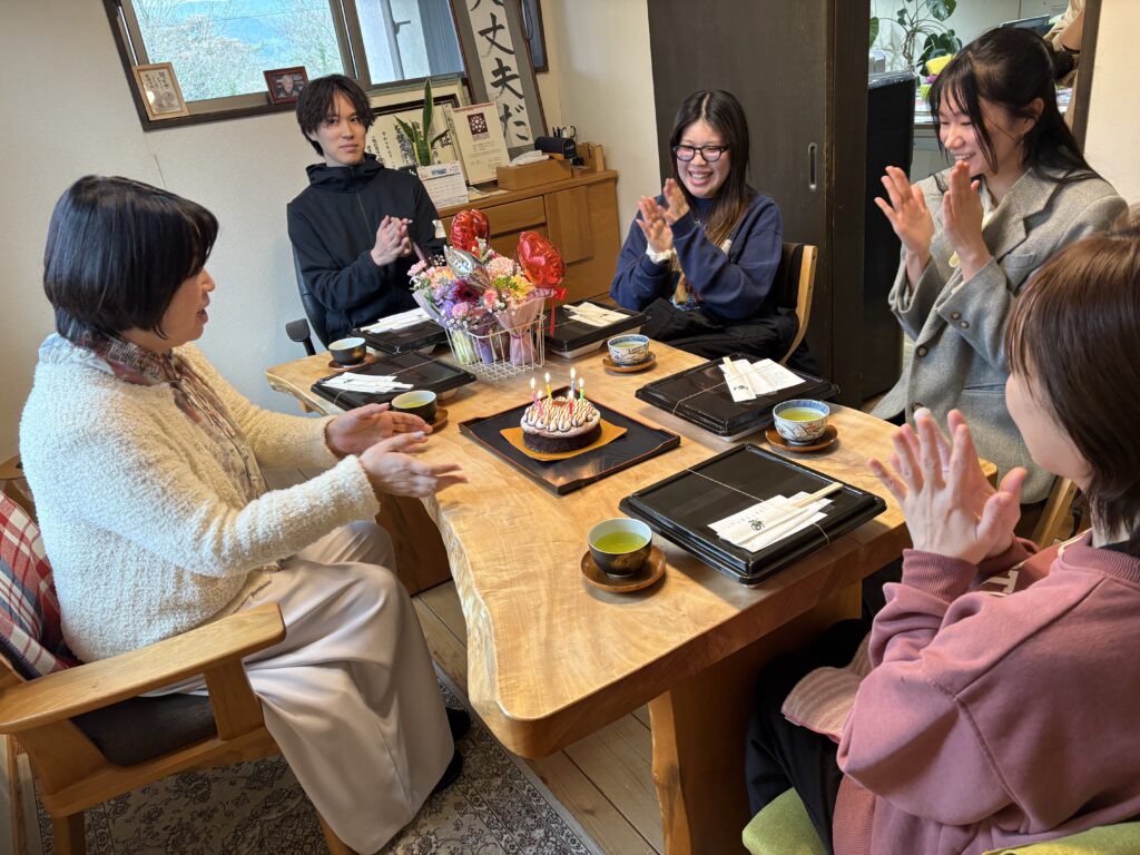 今月は男性スタッフ1名✨女性スタッフ3名と社長も一緒に、みんなでお弁当ランチを囲みながらお祝いしました🍱